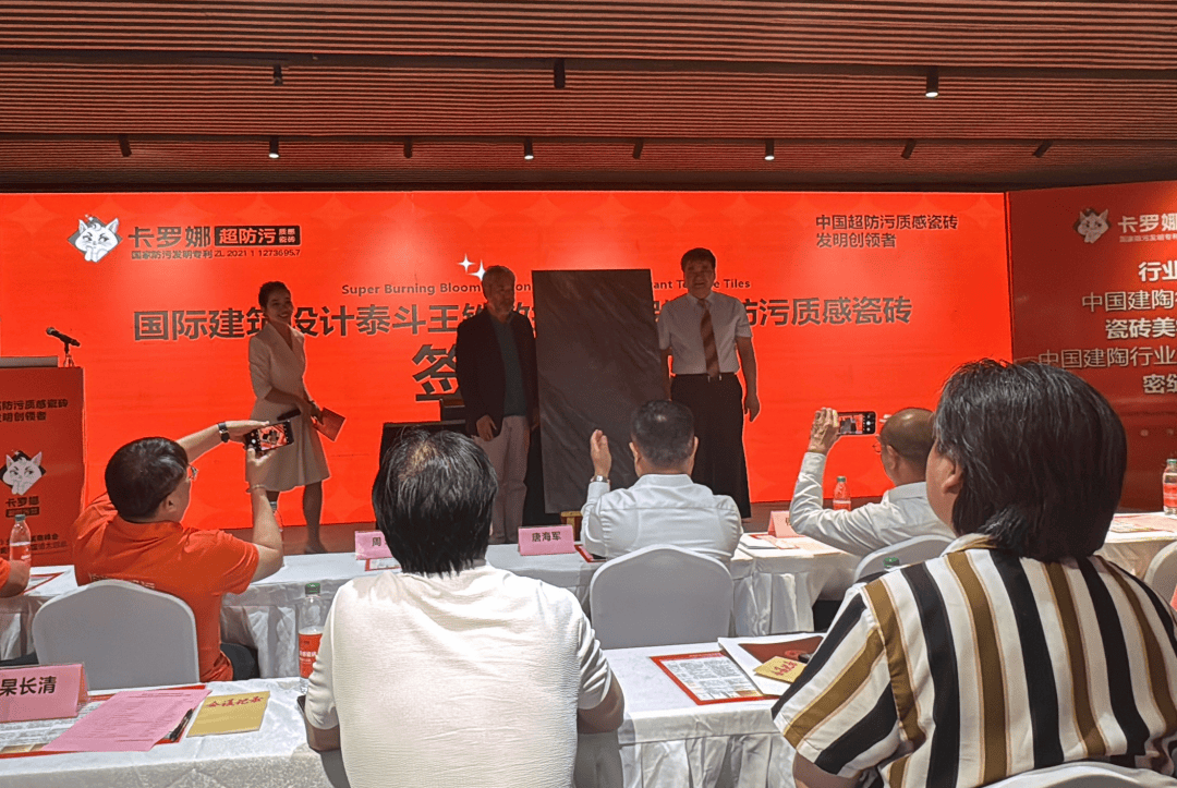 卡罗娜超防污质感瓷砖取设想名企的正式告竣签约合做,
