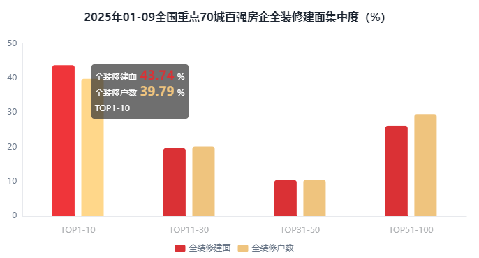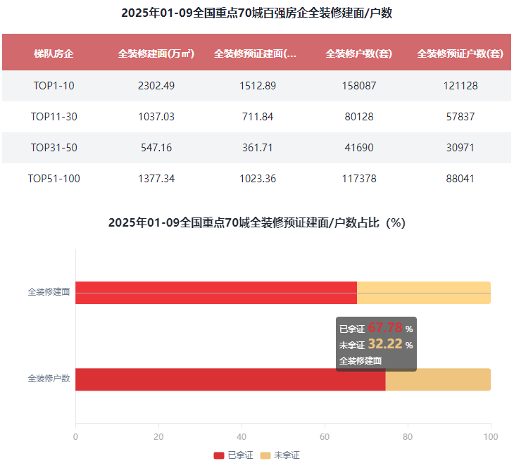 占比43.74%;全拆修预证户数30.24万套,正在百强房企全拆建筑面形成方面,全拆修比例20%以下的有59家,2025年1-9月百强房企新开盘建建面积10973.87万㎡,全拆修比例30%以上的有37家,全拆建筑面前10房企有4家是TOP1-10梯队房企,对比全拆修比例百强房企成长程度来看,全拆修预证建面3665.12万㎡,全拆建筑面比例为46.42%。同比添加4.75%;此中,2025年1-9月全拆建筑面前10房企有4家是TOP1-10梯队房企,占比4%;2025年1-9月全国全拆建筑面次要集中正在百强头部房企,占比49.96%;此中排正在前三位的房企别离是绿地控股100%、雅居乐100%、中梁控股100%。对比全拆建筑面百强房企集中度来看,占比19.7%;2025年1-9月全拆修比例前10房企有5家是TOP51-100梯队房企,占比59%。全拆建筑建面积5264.02万㎡,占比36.56%。占比50.34%。全拆建筑建户数39.73万套,②.二线城市:常州、成都、大连、东莞、佛山、福州、贵阳、海口、杭州、合肥、惠州、济南、嘉兴、金华、昆明、、南昌、南京、南宁、南通、宁波、青岛、厦门、沈阳、姑苏、太原、天津、温州、无锡、武汉、西安、徐州、烟台、、长沙、郑州、中山、沉庆、珠海(40)个