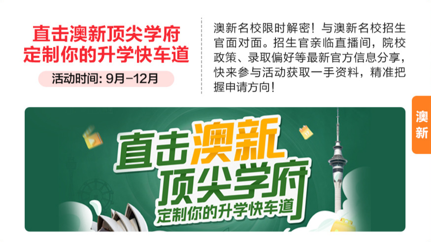 勾当一:高能开学季,更无机会免去申请费!澳新名校限时解密!学生可按照本身布景肆意选择海内/外科研取职场提拔等项目名校招生官,
